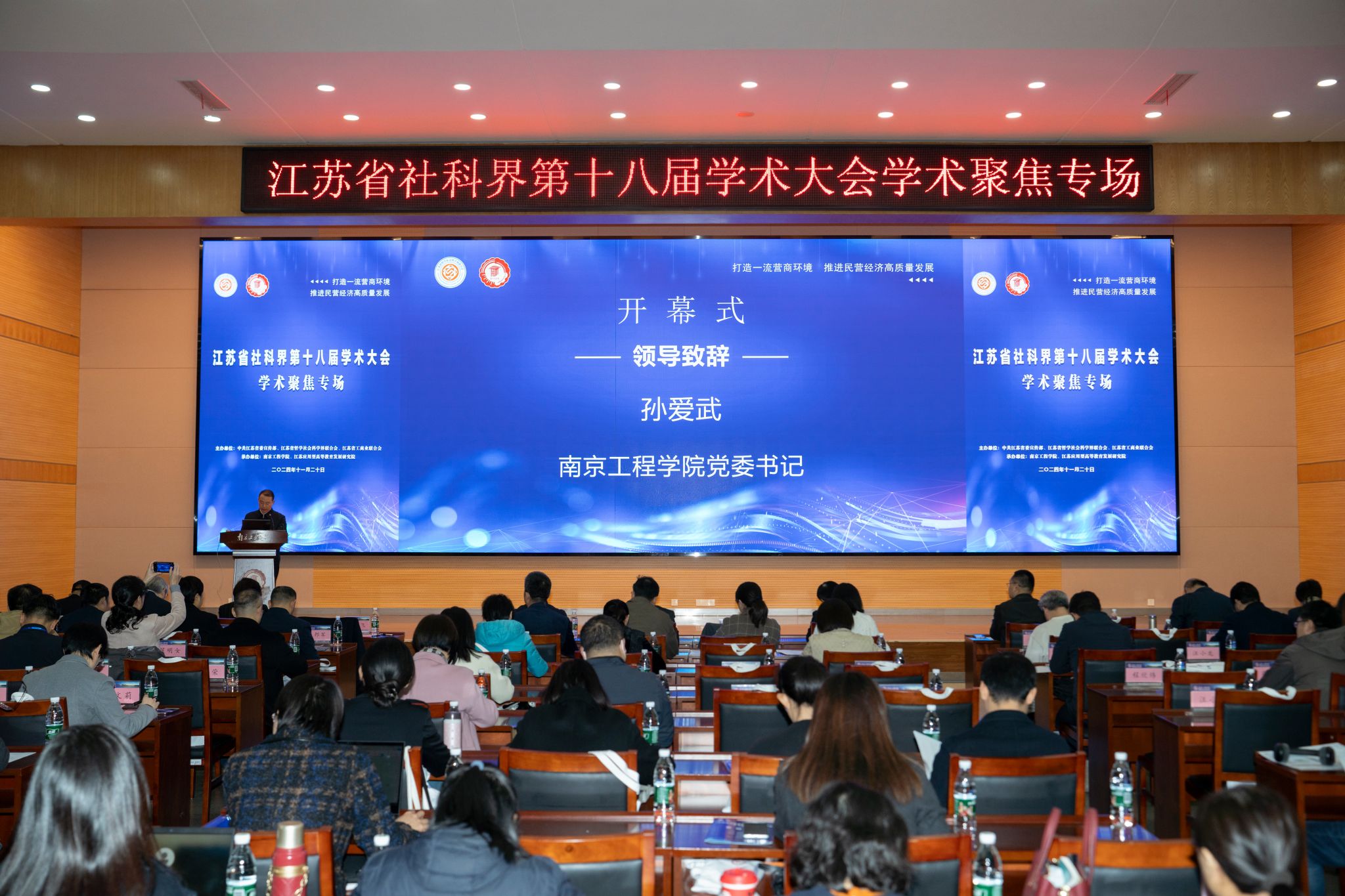 为深入学习贯彻习近平新时代中国特色社会主义思想,全面贯彻党的二十大和二十届三中全会精神,全面落实省委十四届七次全会精神,11月20日,由中共江苏省委宣传部、江苏省哲学社会科学界联合会、江苏省工商业联合会主办,凯发k8官网、江苏应用型高等教育发展研究院承办的江苏省社科界第十八届学术大会学术聚焦专场在我校举行。省社科联党组书记、常务副主席张新科,省工商联党组成员、副主席郭东升,省社科联党组成员、副主席...