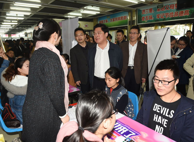 校领导来到招聘会现场与用人单位和学生亲切交谈