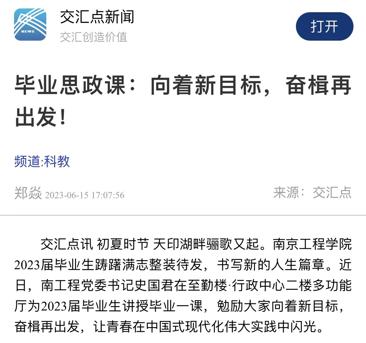 新闻链接:https://jnews.xhby.net/v3/waparticles/7fda002d5708436da67a57947ffc4b06/0/OjMnZnrbau8sFgv9/1