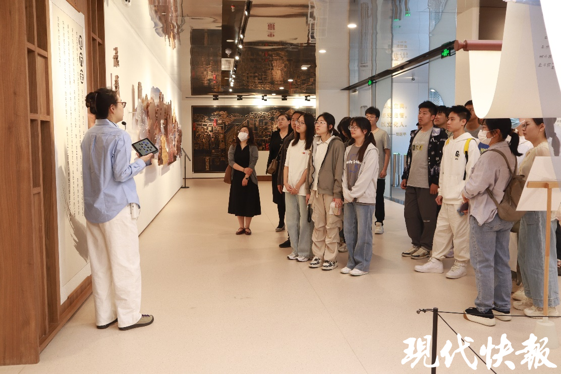 在江苏省方志馆,师生代表通过地方志、古籍、年鉴、实物展陈等丰富资料,系统了解了江苏地区源远流长的历史文化脉络,深刻感受中华优秀传统文化的生生不息与地方文化的独特魅力。校领导现场讲授《坚定文化自信,担当时代使命》专题思政课,引导学生坚定理想信念、勇担时代使命。同学们还化身“优秀传统文化采集者”,记录素材,写下感悟。