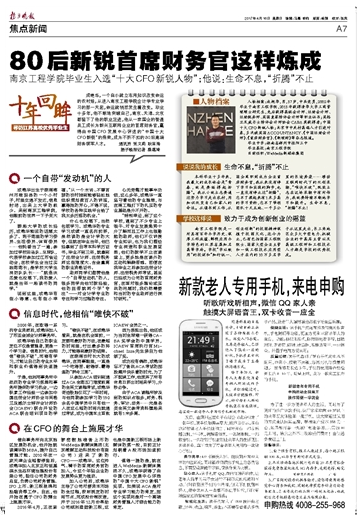 成艳华,一个自小就立志用知识改变命运的农村娃,从进入凯发k8官网会计学专业学习的那一天起,命运就悄然发生着改变。毕业十多年,他不断地突破自己,南京、天津、北京都留下了他的职业足迹,他从一家国企的普通员工成长为新兴互联网企业的首席财务官,赢得由中国CFO发展中心评选的“中国十大CFO新锐”的殊荣,成为不折不扣的80后高端财务领军人才。