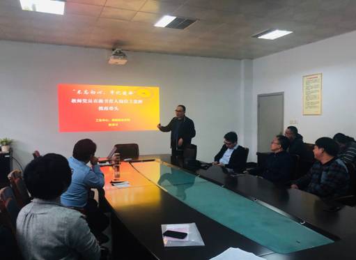 10月23日下午,该中心党总支副书记、主任黄家才为教工第一支部党员教师们上了“教师党员如何发挥先锋模范作用”主题党课。黄主任从“八个明确”、“十四个坚持”、“教师党员在教书育人岗位上的模范带头作用”和“存在的问题及整改措施”四个方面展开论述,详细分析了“八个明确”和“十四个坚持”的具体内涵和内在联系,并结合工业中心实际与支部成员展开了讨论。他说,党员教师是教师中的先进、表率和榜样,对整个教师队伍起着引领、带动、凝聚的作用,要积极开展自查,不断完善自我。